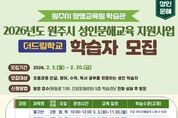 한국시사경제 권충언 기자 | 원주시 학습관은 2026년 성인문해교육 지원사업으로, 학력 취득 기회를 놓친 성인을 대상으로 한 기초·디지털 문해교육 ‘더드림(The Dream)학교’를 본격 운영한다. 이번 교육은 기초 성인문해교육과 디지털 문해교육을 통합한 원주형 성인문해교육 지원사업이다. 단계별 한글 교육 더디딤 4개 반(13명)과 맞춤형 심화 교육 더채움 4개 반(32명)으로 구성된다. 교육과정은 국가평생교육진흥원 성인문해 교재를 활용한 단계별 한글 교육을 중심으로, 맞춤형 생활 문해(영어·수학·독서)와 창의적 체험활동을 병행해 학습자의 일상 적응력과 자신감 향상을 도모한다. 학습자 모집은 2월 20일까지며, 전화로 사전 상담 후 학습관을 방문해 신청하면 된다. 수강료는 전 과정 무료이며, 학습 교재도 제공된다. 자세한 사항은 학습관 평생교육팀으로 문의하면 된다. 한편 학습관은 성인문해교육에 대한 사회적 공감대 확산을 위해 건강문화센터 1층 로비에서 학습자 시화 작품 전시회를 운영하고, 배움의 성과를 시민과 공유하는 홍보 활동도 함께 추진할 계획이다. 윤석재 학습관장은 “이번 교육은