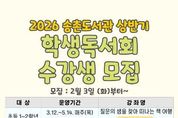 한국시사경제 대전취재본부 | 대전 대덕구 송촌도서관은 어린이들의 올바른 독서 습관 형성과 창의적 사고력 증진을 위해 ‘2026년 상반기 학생독서회’ 수강생을 모집한다. 이번 상반기 학생독서회는 3월 10일부터 5월 19일까지 운영되며, 초등학생 1~6학년을 대상으로 학년별 맞춤형 강좌 3개를 개설해 총 30회에 걸쳐 진행된다. 운영 프로그램은 △초등 1~2학년 대상 ‘질문의 샘을 찾아 떠나는 책 여행’(매주 목요일 오후 3시) △초등 3~4학년 대상 ‘꿈꾸는 독서회’(매주 수요일 오후 4시) △초등 5~6학년 대상 ‘철학하는 십대 : 그림책 인문 하브루타’(매주 화요일 오후 4시)로 구성됐다. 특히 또래 친구들과 함께 책을 읽고 의견을 나누는 활동을 중심으로 운영되며, 독서 후 글쓰기 활동을 병행해 사고력과 표현력을 함께 기를 수 있도록 했다. 또한 전문 독서지도사가 수업을 맡아 어린이 눈높이에 맞춘 체계적인 독서 지도를 제공할 예정이다. 수강 신청은 대덕구 도서관 홈페이지 또는 전화로 선착순 접수하며, 수강료와 재료비는 전액 무료다. 기타 자세한 사항은 송촌도서관으로 문의