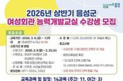 한국시사경제 오영주 기자 | 음성군은 2026년 상반기 여성회관 능력개발교실 수강생을 모집한다. 이번 교육은 오는 3월 6일부터 12주간 진행되며 △재봉틀반 △라인댄스 △라떼아트 △바리스타자격증반 △떡 만들기 △헤어커트 △프랑스 자수 △민화 등 주·야간 총 14강좌로 구성돼 있다. 접수는 2월 9일부터 25일까지 선착순으로 이뤄지며, 음성군민 여성·남성 누구나 신청할 수 있다. 수강 희망자는 접수 기간 내 신분증을 지참하고 음성군 여성회관(2층)을 방문해 신청하면 된다. 수강료는 12주 기준 3만원으로 수강 신청 시 현금 납부이며 재료비는 개인 부담이다. 군 관계자는 “유익한 학습 경험을 통해 군민들의 삶의 질을 높일 수 있도록 최선을 다하겠다”며 “군민들의 수요를 반영한 특별 강좌에 많은 군민이 관심을 두고 참여하길 기대한다”고 말했다.
