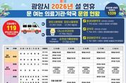 한국시사경제 권충언 기자 | 광양시는 설 명절 연휴 기간 시민과 귀성객들이 안전하고 편안한 명절을 보낼 수 있도록 2월 14일부터 18일까지 5일간 ‘설 연휴 종합상황실’을 운영한다고 밝혔다. 이번 종합상황실은 ▲총괄반 ▲생활민원기동반 ▲재난상황반 ▲진료대책반 ▲일반민원처리반 등 총 5개 반, 하루 평균 39명이 근무하는 체계로 연휴 기간 총 195명의 인력을 투입해 운영되며, 각종 비상 상황에 신속하고 체계적으로 대응해 연휴 기간 발생할 수 있는 생활 불편을 최소화할 계획이다. 먼저 총괄반은 종합상황실 운영 전반을 총괄하며 각 반의 상황을 종합 관리하고, 연휴 기간 상황 유지와 신속한 의사결정을 담당한다. 생활민원기동반은 환경·도로·교통·수도·쓰레기 수거·가로등 등 시민 일상과 직결된 민원을 집중 처리해 연휴 중 불편 사항을 신속히 해소하며, 재난상황반은 자연재해와 각종 긴급 상황에 대비해 24시간 대응 체계를 유지하며 시민 안전 확보에 만전을 기한다. 특히 진료대책반은 연휴 기간 지역 내 응급의료기관과 긴밀히 협력해 24시간 응급실과 당번 의료기관·약국 운영 체계를 유지함으로써 갑작스러운 응급