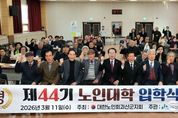 한국시사경제 충북취재본부 | 충북 괴산군은 11일 노인회 지회 3층 회의실에서 송인헌 괴산군수, 노인회 관계자, 이명남 학생대표 외 39명의 학생이 참석해 제44회 노인대학 입학식을 개최했다고 밝혔다. 노인대학은 어르신들이 단조로운 일상에서 벗어나 친교를 나누고 평생 교육으로 신체적·정신적 건강을 지키도록 돕는 프로그램이다. 제44회 노인대학은 3월부터 11월까지 9개월간 매월 둘째, 셋째 수요일에 열린다. 어르신들의 실생활에 유용한 건강 관리와 금융 지식부터 노인 지도자의 역할, 현장 문화 답사까지 알찬 교육 과정으로 운영된다. 군은 어르신들이 단조로운 일상에서 벗어나 동년배 간 친교를 나누고 신체적·정신적 건강을 챙기도록 적극 지원할 계획이다. 송인헌 군수는 “청춘의 열정으로 새로운 배움에 도전하시는 어르신들의 모습에 깊은 존경심을 표하며, 노인대학에서 맺은 인연과 배움으로 더욱 활기차고 행복한 노후를 보내시길 바란다”라고 말했다.