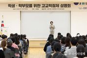 한국시사경제 윤광희 기자 | 서울 은평구는 지난 1일 서울 서부교육지원청과 함께 ‘학생·학부모를 위한 고교학점제 설명회’를 성황리에 개최했다고 밝혔다. 이날 설명회에는 고교 진학을 앞둔 중학생, 학부모 등 약 200명이 참여했다. 이번 설명회는 2025학년도부터 전면 시행된 고교학점제에 대해 학생과 학부모가 능동적으로 대응하고, 학생의 진로와 학업 설계를 돕기 위해 마련됐다. 이날 행사에서는 ▲2022 개정 교육과정 및 고교학점제의 주요 특징 ▲진로에 맞는 과목 선택 및 진로·학업 설계 방법 ▲2028 대입 제도에 따른 고교생활 및 진로·진학 탐색 방법 등이 자세히 안내됐다. 특히 참석자들은 진로와 적성에 맞는 과목 선택 방법과 학업 설계에 대해 높은 관심을 보였다. 현장을 찾은 한 학부모는 “그동안 고교학점제에 대해 막연하게 알고 있었는데, 이번 설명회를 통해 구체적인 내용을 이해할 수 있었다”며 “특히 대입 제도 변화에 따른 구체적인 준비 전략이 많은 도움이 됐다”고 소감을 밝혔다. 김미경 은평구청장은 “이번 설명회가 고교학점제 시행에 다른 학생과 학부모의 궁금증을 해소하고, 학생들