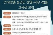 한국시사경제 경기취재본부 | 안성시농업기술센터가 지역 농업인의 안정적인 영농 활동을 돕기 위해 오는 31일까지 ‘안성맞춤 농업인 경영·세무·법률 교육’ 교육생을 모집한다. 이번 교육은 전문가 특강을 통해 농가 운영 중 발생할 수 있는 경영적, 법적 문제를 사전에 예방하고 해결할 수 있는 역량을 키워주기 위해 마련됐다. 교육은 오는 4월 6일부터 30일까지 주제별 지정된 날짜에 진행된다. 모집 분야는 ▲농업 경영 ▲농업 세무 ▲농업 법률 등 3개 과정이며, 분야별로 30명씩 총 90명을 선발한다. 신청 인원이 초과할 경우 내부 선발 기준에 따라 교육생을 최종 선정할 예정이다. 신청 자격은 농업 경영에 관심 있는 안성시민이라면 누구나 가능하며, 접수는 3월 31일까지다. 참여를 희망하는 시민은 이메일을 보내거나 농업기술센터 농업지도과(보개원삼로 219)를 방문해 신청하면 된다. 시 관계자는 “농업인의 눈높이에 맞춘 경영·법률·세무 전문가 특강이 농가 역량을 강화하는 좋은 기회가 될 것”이라며, “안성 농업의 내실을 다지고 싶은 시민 여러분의 많은 관심과 참여를 바란다”고 말했다.