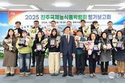 한국시사경제 윤광희 기자 | 진주시는 5일 진주시청 3층 문화강좌실에서 ‘2025 진주국제농식품박람회 평가보고회’를 가졌다. 올해 박람회는 ‘농업과 함께하는 힐링 나들이’라는 슬로건으로 16개국, 261개사, 519개 부스의 매머드급 규모로 열려 1480만 달러의 수출계약을 체결하는 성과를 거뒀다. 무엇보다 농업기술 전시로 미래농업의 방향을 제시하며, 다양한 동반행사와 체험 프로그램으로 모두 33만 명의 관람객이 몰려 대성황을 이뤘다. 이날 평가보고회에서는 올해 박람회를 성공적으로 이끈데 기여한 유관기관과 자원봉사단체, 농업인단체 관계자 등 24명에 대한 표창장 및 감사패 수여식도 진행됐다. 표창 및 감사패를 받은 유공자는 △행사 추진부문에 허유정 △행사장 조성부문에 김우상, 조명조, 이경순 △행사 안내부문에 류동열, 권민주, 최연서, 이서영 △행사 체험부문에 김수린, 임수정, 채병준 △부대행사 운영부문에 김갑임, 강순현, 이경식, 정재훈, 서정덕, 이종화 △동반행사 운영부문에 정태명, 최복희, 백선숙, 최기봉, 홍상훈, 한영천, 이태성이다. 특히 진주국제농식품박람회는 세계축제협회 한국