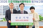한국시사경제 윤광희 기자 | 진주시는 5일, 2025 진주국제농식품박람회 기간 동안 관람객들의 체험비 2340여만 원을 지역사회 어려운 이웃돕기 성금으로 진주시복지재단에 성금으로 기탁했다. 이번 성금은 진주국제농식품박람회에서 관람객들이 참여한 30개 체험 프로그램의 체험비와, 진주국화작품전시회를 관람한 시민들이 참여한 국화 심기 체험비로 마련됐다. 조규일 진주시장은 “많은 시민과 어린이들이 참여한 진주국제농식품박람회 체험비를 보다 의미 있게 사용하고자, 관람객을 대표해 기부를 결정하게 됐다”며 “이번 기탁이 뜻깊게 이루어진 만큼 참여해 주신 모든 관람객께 감사드리며, 모인 따뜻한 마음이 지역 내 어려움을 겪는 이웃들에게 조금이나마 도움이 되길 바란다”고 말했다. 2025 진주국제농식품박람회는 지난 11월 5일부터 9일까지 5일간 진주종합경기장 일원에서 ‘농업과 함께하는 힐링 나들이’ 라는 슬로건으로 33만 명의 관람객에게 힐링과 감동을 선사하며 성황리에 마쳤다. 이를 통해 농업인들은 미래농업의 방향을 제시하는 다양한 정책과 기술 정보를 얻을 수 있었고, 도시민들은 농업을 이해할 수 있는 다채로운 체