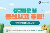 한국시사경제 문화팀 | ■ 싱그러운 봄 등산사고 주의! · 등산 소요시간, 대피소 위치, 날씨 등 산행 전 미리 확인 · 가벼운 몸풀기 및 체력에 맞는 등산로 선택 · 산행 중 몸에 무리가 오면 즉시 하산 · 반드시 지정된 등산로 이용 · 출입이 통제된 위험 구역 진입 금지 · 체온 유지를 위한 여벌의 옷이나 보온용품 챙기기