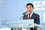 한국시사경제 경기북부취재본부 | 포천시는 10월 1일 오후 4시 소흘읍 행정복지센터 인근에서 옥정~포천 광역철도 건설사업 ‘포천시 철도시대 개막식’(부제: 시민과 함께 포천의 내일(Rail)을 잇다)과 안전기원제를 개최했다. 이번 행사는 포천시에 첫 광역철도가 착공되는 역사적 순간을 기념하고, 새로운 교통 시대의 출발을 알리기 위해 마련했다. 이날 개막식에는 백영현 포천시장을 비롯해 국회의원, 시·도의원, 경기도와 양주시 관계자, 지티엑스(GTX) 포천유치추진위원회, 그리고 많은 포천시민들이 참석해 철도시대의 개막을 함께 축하했다. 행사는 포천시립예술단의 대북과 모듬북 공연과 소리 공연으로 시작을 알리며 분위기를 고조시켰다. 1부에서는 옥정-포천 광역철도 건설사업의 경과보고를 진행하고 사업 추진 과정과 향후 계획을 공유했다. 또한 주요 기관 단체장과 고등학생 대표가 함께한 환영 세레머니를 통해 이번 착공이 미래세대를 위한 기반 조성과 포천의 새로운 도약임을 강조했다. 2부에서는 시공사인 태영건설, 디엘(DL)건설, 극동건설이 주관하는 안전기원제가 열려, 공사기간 중 무사고와 사업의 성공적 추진을 기