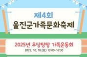 한국시사경제 권충언 기자 | 울진군은 울진군가족센터가 오는 10월 18일 오후 1시부터 평해생활체육공원 축구장에서 제4회 울진군가족문화축제‘우당탕탕 가족운동회’를 개최한다. 이번 축제는 지난해에 이어 두 번째로 열리는 가족운동회로, 온 가족이 함께 어울려 즐길 수 있는 체험과 놀이 프로그램이 준비된다. 연 만들기, 달고나 만들기, 키링 만들기 등 체험 부스를 마련해 다양한 즐길 거리를 제공하며, 가족 대항 레크리에이션, 행운권 추첨 등 푸짐한 선물이 준비되어 있어 참여 가족 모두가 특별한 추억을 만들 수 있도록 다채롭게 구성할 예정이다. 행사는 오후 1시부터 오후 4시 30분까지 운영되며 울진군민 2인 이상 가족이면 누구나 무료로 참여 가능하다. 참가 신청은 울진군가족센터 홈페이지를 통해 가능하며, 자세한 사항은 유선으로 문의하면 된다. 손병복 울진군수는“이번 축제가 세대가 함께 어울리고 소통하는 장이 되어 가족의 소중함을 다시금 느끼는 계기가 되길 바라며 군민여러분의 많은 참여를 부탁드린다”라고 말했다.