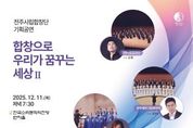 한국시사경제 윤경수 기자 | 전주시립합창단(예술감독 겸 지휘자 김철)이 지역사회와 함께 만들어가는 연말 음악 축제를 선보인다. 전주시립합창단은 오는 11일 오후 7시 30분, 한국소리문화의전당 연지홀에서 지역 아마추어 합창단과 함께하는 송년음악회를 개최한다. ‘합창으로 우리가 꿈꾸는 세상Ⅱ’ 제하의 이번 공연에는 전주시립합창단을 비롯해 △좋은친구들남성합창단(지휘 이영수) △전주엘여성합창단(지휘 윤영권) △전북레이디스합창단(지휘 박신) △완주에버그린콰이어(지휘 강연모) △부귀초등학교 꿈드림합창단(지휘 임연정) 등 5개 아마추어 합창단이 무대에 오른다. 특히 이번 공연은 총 200명의 연주자가 참여하는 대규모 연합무대로, 시민들에게 웅장한 합창의 감동을 선사할 것으로 기대를 모은다. 뿐만 아니라 이번 공연에서는 전주를 주제로 한 위촉 초연곡 ‘그곳에서’를 처음으로 선보인다. 홍원표 시인의 시에 전주 출신 작곡가 이범준이 곡을 붙인 이 작품은 전주에 대한 그리움과 사랑, 그리고 다시 만남을 바라는 마음을 담아낸 노래로 구성됐으며, 공연 후반부 연합합창으로 울려 퍼지며 송년 무대의 절정을 장식할 예정이다
