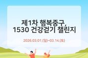 한국시사경제 의료보건팀 | 부산 중구는 관내 중구민과 직장인을 대상으로 3월 1일부터 3월 14일까지 걷기 앱 워크온을 활용한‘제1차 행복 중구, 1530 건강걷기 챌린지’를 운영한다 참여자들의 걷기 실천을 위한 본 챌린지는 시간과 장소 제약 없이 워크온 앱이 설치된 휴대폰을 지참한 후 기간 내 70,000보 걷기를 목표로 하고 있으며, 목표 달성 시 추첨을 통해 소정의 상품을 제공할 예정이다. ‘제1차 행복중구, 1530 건강걷기 챌린지’는 2월 23일부터 사전 예약을 시작하며 참여를 희망하는 주민은 스마트폰에서 워크온 앱을 설치하고 부산 중구보건소 커뮤니티 가입, 챌린지 메뉴 ‘예약하기’또는‘참여하기’버튼을 누르면 참여가 가능하다. 자세한 사항은 워크온 챌린지 게시판을 참고하거나 중구 보건소로 문의하면 된다.