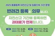 한국시사경제 기동취재팀 | 양천구는 반려동물의 유실·유기 방지와 체계적인 관리 강화를 위해 오는 10월 31일까지 ‘동물등록 자진신고 기간’을 운영한다고 9일 밝혔다. 현행 동물보호법에 따르면 2개월령 이상의 반려견은 의무적으로 동물등록 대상이며, 소유자 정보나 동물의 상태가 변경(유실, 되찾음, 사망 등)된 경우에도 반드시 변경 신고를 해야 한다. 구는 소유자의 자발적 동물등록을 유도하고 등록 미비로 발생하는 각종 문제를 사전에 차단하기 위해 자진신고 기간을 운영하고 있으며, 이 기간에 신규 등록하거나 변경사항을 신고하면 미등록·미신고에 따른 과태료를 면제하고 있다. 동물등록은 구에서 대행기관으로 지정한 동물병원을 방문해 진행하면 된다. 등록 방식은 마이크로칩을 피하에 삽입하는 내장형과 목걸이 형태로 부착하는 외장형 중 선택할 수 있다. 변경 신고는 동물등록 대행기관을 통해 접수하거나, ‘정부24’ 또는 ‘국가동물보호정보시스템’에서 온라인으로도 가능하다. 구는 특히 내장형 동물등록을 진행한 소유주에게 동물등록비도 지원하고 있다. 올해는 총 250마리를 대상으로 지원하며, 동물등록 대행기관에서 내장