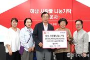 한국시사경제 기동취재팀 | 지난 1일 청운사는 하남 사랑愛나눔 성품 및 성금으로 라면 100박스, 백미 10kg 100포, 성금 500만원(1,060만원 상당)을 기탁하고 기탁식을 가졌다. 청운사는 2020년부터 관내 취약계층을 위한 성품 및 성금 기탁을 통해 꾸준한 나눔 문화를 실천하고 있으며, 올해도 하남시에 성품 및 성금을 기탁하며 나눔을 실천했다. 이날 기탁식에는 이현재 하남시장을 비롯하여 청운사 노혜원 사무장, 조순례 신도회장, 김영숙 부회장, 전인숙 총무가 참석하여 자리를 빛냈다. 노혜원 사무장은“지역내 어려운 이웃들에게 조금이나마 도움이 되길 바라고, 풍성한 한가위 명절이 되길 바란다”고 전했다. 이현재 하남시장은“2020년부터 끝임없이 나눔을 실천해 준 청운사에 감사드리며, 어려운 이웃이 따뜻한 추석이 되실 수 있도록 잘 전달하겠다”고 말했다. 이날 기탁한 성금 및 성품은 동 행정복지센터 및 하남시푸드뱅크를 통해 취약계층에게 배부될 예정이다.