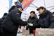 한국시사경제 전북취재본부 | 남원시는 1일 기원제(덕음산 팔각정)와 사랑의 광장에서 2026년 병오년(丙午年) 새해 해맞이 떡국나눔 행사를 개최했다. 이번 행사는 남원애향본부(이사장 김경주)와 남원로타리클럽(회장 최병진) 주최‧주관하고 남원시와 춘향로타리클럽이 후원한 가운데 열렸으며, 시민과 공무원, 관광객 등 2,000여 명이 참여해 새해 첫 일출을 맞으며 한 해의 안녕과 도약을 기원했다. 행사는 새벽 산행 후 해맞이를 시작으로 △축문낭독 △기원제(분향) △새해 덕담 △제2중앙경찰학교 유치 염원 퍼포먼스 순으로 진행됐으며, 참석자들은 떠오르는 해를 바라보며 각자의 소망을 되새기는 시간을 가졌다. 특히 이날 행사에서는 제2중앙경찰학교 남원 유치 염원 퍼포먼스가 함께 펼쳐져 눈길을 끌었다. 참가자들은 관련 문구가 적힌 손피켓과 구호를 통해 남원 유치에 대한 시민들의 한뜻을 모으며 지역균형발전 유치 필요성 공감대 형성 및 남원시민의 강한 의지를 대내외에 알렸다. 이후 참가자들은 사랑의 광장으로 이동해 남원시립농악단의 공연과 함께 떡국 및 막걸리 나눔 행사가 이어져 새해의 따뜻한 정을 나누는 화합의 장이