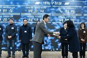 한국시사경제 기동취재팀 | 지난 30일, 수원시 영통구는 수원시와 영통구를 위해 헌신한 구민들을 대상으로 2025년 영통구 연말시상식을 개최했다. 영통구 발전을 위하여 달려온 ‘2025년 을사년’ 한 해, 서로 간의 수고를 격려하고 성과를 공유하며 다가오는 ‘2026년 병오년’의 희망찬 출발을 다짐하기 위하여 개최된 이번 시상식에 영통구민 및 공직자 약 200여명이 참석했다. 이날 시상식은 영통구 여성합창단의 문화공연을 시작으로 표창수여, 축하말씀 순으로 진행됐다. 특히, 올 한해 영통구의 발전과 화합을 위해 헌신하여 수상의 영예를 안은 구민들을 직접 축하하고 감사의 뜻을 전하기 위해 참석한 지역 주민들의 화합과 따뜻함을 볼 수 있는 시간이라 더욱 뜻깊은 시간이었다. 장수석 영통구청장은 “보이지 않는 자리에서 지역을 위해 애써주신 구민 여러분의 노력이 오늘의 영통구를 만들었다”며, “앞으로도 지역사회 발전에 기여한 구민들을 지속적으로 발굴·격려하고 구민과 함께하는 행정을 통해 신뢰받는 구정을 실현해 나가겠다”고 말했다.