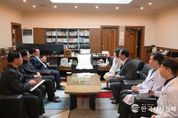한국시사경제 경기북부취재본부 | 동두천시는 지난 30일 시청 상황실에서 동두천기독교연합회 회원들과 함께 소통과 협력을 강화하기 위한 정담회를 개최했다. 이번 정담회는 지역사회의 주요 현안을 공유하고, 시정 발전을 위한 의견을 나누기 위해 마련됐으며, 동두천기독교연합회 회장 장헌익 목사 등 20명이 참석해 동두천시와 기독교연합회의 협력 방안 등 다양한 과제에 대해 논의했다. 박형덕 동두천시장은 “동두천시를 위해 늘 많은 노력과 기도를 아끼지 않는 기독교연합회 회원 여러분께 감사드리며, 오늘 이 자리에서 나눈 다양한 의견들을 적극 반영하여 더욱 살기 좋은 동두천시를 만들 수 있도록 노력하겠다”라고 전했다.