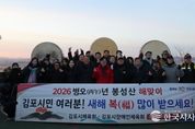 한국시사경제 경기북부취재본부 | 김포시와 김포시체육회·김포시장애인체육회가 지난 1일 하성면 봉성산에서 ‘2026 봉성산 해맞이 행사’를 개최하고, 시민들과 함께 병오년 붉은 말의 해의 시작을 알렸다. 이번 행사는 새해 첫 일출을 맞이하며 시민 화합과 지역 공동체의 안녕을 기원하기 위해 마련됐다. 이른 새벽부터 봉성산을 찾은 시민들은 서로 새해 인사를 나누며 함께 산길을 오르고, 정상에서 떠오르는 해를 바라보며 한 해의 평안과 희망을 기원했다. 당초 예상보다 많은 약 1,000명의 시민이 참여해, 추운 날씨에도 불구하고 봉성산 일대는 새해를 맞이하는 시민들의 발걸음으로 활기를 띠었다. 행사는 오전 7시 봉성산 정상에서 시민 1,000여 명이 참여한 가운데 ▲성악 앙상블 ‘벨라보체 6인조’의 밝고 웅장한 새해 축하 공연을 시작으로 ▲타악연희단 ‘누리’의 박진감 넘치는 모듬북 공연이 이어지며 새해의 기운을 힘차게 알렸다. 이어 시민들이 직접 참여해 새해 소망과 행복, 지역 화합을 기원하는 프로그램이 진행되며 의미를 더했다. 이날 김병수 김포시장은 “붉은 말의 해, 김포에 붉은 교통이 들어와서 모든 분들에게 큰 기쁨이
