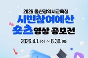 한국시사경제 울산취재본부 | 울산광역시교육청이 시민의 목소리를 교육 예산에 담는 ‘시민참여 예산제’를 널리 알리고자 특별한 영상 공모전을 개최한다. 울산교육청은 4월 1일부터 6월 30일까지 울산 시민을 대상으로 ‘시민참여 예산제 짧은 영상(숏츠) 공모전’을 연다. 이번 공모전은 시민이 직접 제작한 영상을 통해 제도의 이해를 돕고 참여를 확산하기 위해 마련됐다. 특히 짧은 영상 중심의 대중적인 흐름에 맞춰 예산 사업을 쉽고 흥미롭게 알린다는 취지다. 공모 주제는 시민참여 예산제를 쉽고 개성 있게 소개하는 내용이다. 울산 시민이면 누구나 개인 또는 4인 이하 팀으로 참여할 수 있으며, 창의적이고 다양한 시각을 담은 작품 발굴에 중점을 둔다. 출품작은 30초 이내의 세로형 영상이어야 하며, 반드시 참가자가 직접 제작한 순수 창작물이어야 한다. 접수를 희망하는 시민은 기간 내에 참가신청서와 작품 파일을 담당자 전자우편으로 제출하면 된다. 단, 드론 등을 활용한 항공 촬영이 포함될 경우 관련 법규를 반드시 준수해야 한다. 심사는 영상 제작 전문