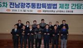 한국시사경제 광주취재본부 | 광주광역시와 전라남도는 13일 순천대학교 우석홀에서 ‘광주·전남 행정통합 동부권 타운홀미팅’을 열고 열띤 공개 토론을 진행했다. 행정통합에 대해 동부권 시도민의 목소리를 직접 듣기 위한 자리로, 강기정 시장과 김영록 지사가 동부권 2040청년 패널 100여명과 자치행정, 교육, 산업, 복지, 농어촌 등 다양한 주제에 대해 지역의 미래를 묻고 답했다. 이번 행사는 방송 3사가 공동기획한 시민 참여형 토론 프로그램 마지막 일정으로, KBS 광주방송총국이 주관했다. 조우종 아나운서가 진행을 맡은 이번 타운홀미팅은 17~18일 이틀간 방송됐다. 강기정 시장은 이날 정치·자치행정 분야와 교육·문화예술 분야 행정통합 비전을 발표했다. 강 시장은 “광주전남 행정통합은 청년과 인재가 지역을 떠나지 않아도 되는 기반을 만들고, 광주와 전남이 하나의 생활·경제권으로 성장하기 위한 선택이다”며 “통합특별시 출범에 따른 정부의 재정 지원은 위기 산업을 회복하고 미래 산업을 육성해 양질의 일자리를 창출하는 데 쓰인다. 특히 AI영재고와 Arm 스쿨, GCC 사관학교 등 교육 인프라를 통해 광주·전남에서 미