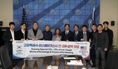 한국시사경제 경기북부취재본부 | 가평군 가평읍 마장초등학교 학부모와 학생들이 바자회 수익금을 모아 이웃돕기에 나섰다. 마장초등학교 학부모회 정다울 회장과 학생들은 최근 가평군청을 방문해 바자회를 운영하며 마련한 수익금 49만7천원을 이웃돕기 성금으로 기탁했다. 이번 성금은 학부모와 학생들이 직접 참여해 모은 수익금이라는 점에서 나눔의 의미를 더했다. 정다울 학부모회장은 “바자회를 통해 아이들이 나눔의 가치를 자연스럽게 배우고, 그 마음을 지역사회에 전하고자 했다”며 “작은 정성이지만 이웃들에게 도움이 되길 바란다”고 말했다. 김미성 가평군 부군수는 “학생들과 학부모가 함께 뜻을 모아 따뜻한 나눔을 실천해 주셔서 감사드린다”며 “아이들의 소중한 마음이 지역사회에 잘 전달될 수 있도록 소중히 사용하겠다”고 밝혔다.