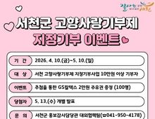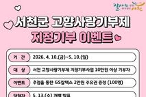 한국시사경제 경제팀 | 서천군은 고향사랑기부제 지정기부사업 활성화와 기부 참여 확산을 위해 오는 4월 10일부터 5월 10일까지 지정기부사업 기부 이벤트를 추진한다. 이번 이벤트는 지정기부사업에 10만원 이상 기부한 기부자를 대상으로 진행되며, 추첨을 통해 100명에게 2만원 상당의 모바일 주유권을 지급할 예정이다. 군이 올해 새롭게 추진하는 지정기부사업은 ‘서천어린이합창단 '우리가 만드는 하나의 노래' 지원사업’과 ‘우리동네 건강 지킴이, 서천군 관리의사 채용 프로젝트’ 등 2개 사업이다. ‘서천어린이합창단 '우리가 만드는 하나의 노래' 지원사업’은 어린이합창단의 공연 기회 확대와 지역 아동의 문화예술 활동 지원을 위해 마련됐으며, ‘우리동네 건강 지킴이, 서천군 관리의사 채용 프로젝트’는 지역 의료 공백 해소를 위한 관리의사 인건비 지원을 목적으로 추진된다. 목표 모금액은 어린이합창단 지원사업 3800만원, 관리의사 채용 프로젝트 3억원으로, 2026년 12월 31일까지 모금을 진행한 뒤 2027년 사업을 본격 추진할 계획이다. 김기웅 군수는 “의미 있는 지정기부사업 발굴을 통해