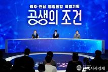한국시사경제 광주취재본부 | 광주광역시와 전라남도는 13일 순천대학교 우석홀에서 ‘광주·전남 행정통합 동부권 타운홀미팅’을 열고 열띤 공개 토론을 진행했다. 행정통합에 대해 동부권 시도민의 목소리를 직접 듣기 위한 자리로, 강기정 시장과 김영록 지사가 동부권 2040청년 패널 100여명과 자치행정, 교육, 산업, 복지, 농어촌 등 다양한 주제에 대해 지역의 미래를 묻고 답했다. 이번 행사는 방송 3사가 공동기획한 시민 참여형 토론 프로그램 마지막 일정으로, KBS 광주방송총국이 주관했다. 조우종 아나운서가 진행을 맡은 이번 타운홀미팅은 17~18일 이틀간 방송됐다. 강기정 시장은 이날 정치·자치행정 분야와 교육·문화예술 분야 행정통합 비전을 발표했다. 강 시장은 “광주전남 행정통합은 청년과 인재가 지역을 떠나지 않아도 되는 기반을 만들고, 광주와 전남이 하나의 생활·경제권으로 성장하기 위한 선택이다”며 “통합특별시 출범에 따른 정부의 재정 지원은 위기 산업을 회복하고 미래 산업을 육성해 양질의 일자리를 창출하는 데 쓰인다. 특히 AI영재고와 Arm 스쿨, GCC 사관학교 등 교육 인프라를 통해 광주·전남에서 미