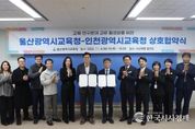 한국시사경제 울산취재본부 | 울산광역시교육청과 인천광역시교육청이 4일 오후 4시 울산교육청 접견실에서 교육·연구 분야 교류 활성화를 내용으로 하는 업무협약을 했다. 이번 협약은 두 교육청이 상호 신뢰와 협력을 바탕으로 독서·인문교육과 연구 분야 발전을 도모하고, 지역 문제 해결과 사회 공헌을 위한 공동 프로그램 개발을 함께 추진하고자 마련됐다. 두 교육청은 이번 협약으로 교육·연구 분야 교류 활성화를 위한 다양한 프로그램을 공동 운영하고, 상호 연계로 교육 발전을 꾀한다는 방침이다. 또한 지역사회의 문제해결과 공공 가치를 실현하는 사회 공헌 프로그램을 공동 개발하고 운영하는 데 협력하기로 했다. 특히, 울산광역시교육청의 대표 독서인문교육 프로그램 ‘책크인’ 과 인천광역시교육청의 대표 독서교육 프로그램 ‘읽걷쓰’를 연계해 두 기관의 우수 교육 자료(콘텐츠)를 상호 공유하고 발전시킬 계획이다. ‘책크인’은 ‘책으로 크는 우리 아이’와 ‘독서의 세계로 체크인(check-in)한다’는 의미를 담아 학생의 성장과 독서 문화 확산을 목표로 한다. ‘읽걷쓰’는 읽기(문해력), 걷기(기초