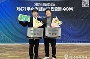 한국시사경제 김태훈 기자 | 서천군농업기술센터는 지난 2일 충청남도농업기술원에서 열린 ‘제4기 충남 농업 미래리더 인증식’에서 서천군 청년농업인 최한열 씨와 이승원 씨가 충청남도 우수청년농부 인증패를 수상했다고 밝혔다. 이번 인증식은 충남 지역 청년농업인 24명을 대상으로 고소득, 새도전, 행복 등 3개 부문에 걸쳐 진행됐다. 이 가운데 최한열 씨와 이승원 씨는 ‘충남 농촌에 살며 행복한 청년농업인’을 선정하는 행복 부문에 이름을 올리며 서천 청년농업인의 역량을 입증했다. 최한열 씨(37·서면)는 2019년 귀농해 ‘아이줄농장’을 운영하고 있는 청년농업인으로, ‘내 아이에게 줄 수 있는 깨끗한 농산물’이라는 철학을 바탕으로 친환경 벼와 밤호박을 재배하고 있다. 또한 드론 방제 대행을 통해 고령 농업인의 일손 부족 해소에도 힘을 보태며 지역 농업 현장에서 역할을 다하고 있다. 이승원 씨(38·마산면)는 부모와의 협업경영을 위해 귀농한 청년농업인으로, 드론 조종사 자격을 취득해 연간 약 240헥타르 규모의 방제 작업을 직접 수행하고 있다. 이를 통해 스마트농업의 현장 적용 가