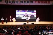 한국시사경제 대전취재본부 | 대전시는 6일 오전 10시 대전시청 3층 대강당에서 ‘대전․충남 행정통합 타운홀미팅’을 개최하고, 행정통합 특별법안을 둘러싼 주요 내용과 쟁점에 대해 시민들과 직접 소통하는 시간을 가졌다. 이번 행사는 최근 국회에 제출된 행정통합 특별법안에 대한 시민 이해를 높이고, 다양한 의견을 폭넓게 수렴하기 위해 마련됐다. 주민, 시의원, 민관협의체 위원, 전문가 등 약 500여 명이 참석했다. 행사는 지난해 국회에 발의된 특별법안과 최근 제출된 특별법안을 중심으로 주요 내용과 쟁점, 법안 간 차이점을 설명하는 것으로 시작됐다. 참석자들은 행정통합이 지역 행정체계와 주민 생활에 미칠 영향에 대해 설명을 듣고, 법안의 핵심 사항을 공유하는 시간을 가졌다. 이어진 질의응답 시간에는 이장우 대전시장과 대전․충남 행정통합 민관협의체 공동위원장이 함께 자리해 시민들의 질문에 답했다. 시민들은 재정 특례, 행정 권한, 지방의회 역할, 주민 참여 방식 등 다양한 분야에 대해 의견을 제시하며 활발한 논의를 이어갔다. 이장우 대전시장은 “행정통합은 단기적인 이해관계를 넘어 지역의 미래