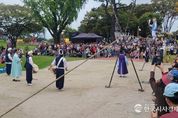 한국시사경제 권충현 기자 | 진주시는 진주남강유등축제와 연계하여 진주성 중영에서 진행 중인 전통연희 공연 '진주성 연희광대'가 시민과 관광객들의 큰 호응 속에 진행됐다고 밝혔다. 이번 공연은 10월 4일부터 9일까지 1일 1회(추석당일 제외), 총 5회 일정으로 많은 시민과 관광객이 참여해 낮 시간대에 펼쳐지는 공연임에도 관람석이 가득 찰 만큼 뜨거운 열기를 보였다. '진주성 연희광대'는 진주성의 역사와 민속 전통을 바탕으로, 이야기꾼의 재치 있는 해설과 입담 속에 죽방울놀이·버나놀이·모듬북 공연·줄타기 등이 어우러진 흥겨운 전통연희 공연이다. 공연이 펼쳐지는 진주성 중영과 인접한 촉석루 일원은 임진왜란 진주대첩의 역사와 유서 깊은 정취가 깃든 공간으로, 관람객들은 유서 깊은 성곽과 누각을 배경으로 전통연희의 흥과 감동을 함께 느낄 수 있다. 특히 진주남강유등축제와 연계해 운영되며, 낮에는 진주성에서 전통 공연을 감상하고, 밤에는 남강의 유등을 즐길 수 있는 진주의 대표 가을 축제로 자리매김했다. 진주시 관계자는 “이야기꾼의 생동감 넘치는 해설과 전통연희가 어우러진 이번 공연은 진주의