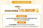 한국시사경제 문화팀 | 17년 만에 노사 합의로 결정! 2026년 시간당 최저임금 10,320원 ■ 최저임금이란? 노동자의 생활 안정을 보장하고 더 나은 일자리 환경을 만들기 위해 임금의 최저수준을 보장하는 제도 ■ 월 환산액 2,156,880원(주 40시간 기준, 유급 주휴* 8시간 포함) *주휴수당: 근로자(1주 소정근로시간 15시간 이상)가 1주일 개근한 경우, 주 1회 유급휴일에 대해 지급되는 수당 ■ 포함되는 금액 - 매월 1회 이상 정기 지급하는 임금(매월 지급 상여금, 식비, 숙박비, 교통비 등) ■ 제외되는 금액 - 통화 이외의 것으로 지급하는 임금 - 소정근로 외의 임금(시간외수당 등)