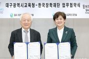 한국시사경제 대구취재본부 | 대구시교육청은 2월 26일 오후 5시, 시교육청 접견실에서 한국장학재단과 업무 협약을 체결했다. 이번 협약은 학자금 지원 정책과 초·중·고교 교육 현장을 연계한 협력 체계를 구축하고 지역 기반 인재 양성에 기여하기 위해 마련됐다. 협약에 따라 양 기관은 ▲학생 및 학부모 대상 학자금 지원 제도 정보 제공 및 홍보, ▲학교 현장과 연계한 협력 사업 추진 및 참여 지원, ▲학생지원사업 발전을 위한 상호 협조 및 홍보 지원, ▲기타 지역 기반 인재 양성 관련 업무 등을 함께 추진할 계획이다. 이날 협약식에는 강은희 교육감, 배병일 한국장학재단 이사장을 비롯해 중등교육과장, 중등장학담당 장학관, 한국장학재단 관계자 등 10여명이 참석했다. 배병일 한국장학재단 이사장은 “이번 협약은 경제적 여건과 관계 없이 의지와 능력이 있으면 누구나 공부할 수 있는 여건을 마련할 수 있는 뜻깊은 출발점이 될 것”이라며 “우리 사회의 미래인 학생들이 사회 구성원으로 당당히 성장할 수 있도록 든든한 버팀목이 되겠다”고 전했다. 강은희 교육감은 “한국장학재단과의 협력을 통해 모든 학생들