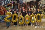 한국시사경제 김태훈 기자 | 마침내, 2025 청주공예비엔날레가 20만 고지를 밟았다. 한가위 연휴 사흘째이자 개막 32일 차를 맞은 5일 낮 1시 40분경, 2025 청주공예비엔날레에 20만 번째 관람객이 탄생했다. 직전 2023 비엔날레보다 엿새 빠르게 20만 고지 달성의 기쁨을 안겨준 주인공은 윤선경(청주 흥덕구 대농로) 씨 가족. 추석 명절을 맞아 놀러 온 조카 둘까지 아이 넷을 데리고 전시장을 찾았다가 20만 번째의 주인공이 됐다. 이날은 특히 조직위원장인 이범석 청주시장이 한가위 연휴를 맞아 일일 운영요원으로 깜짝 변신해 고향을 방문한 귀성객을 포함한 관람객을 직접 맞이하던 중이라 특별함을 더했다. 공예비엔날레 방문은 처음이라는 윤선경 씨는 “주변에서 이번 비엔날레가 좋다는 얘기를 많이 들어서 추석 명절 맞아서 조카들 데리고 와봤는데, 20만 번째 행운의 주인공이 되다니 너무 신나고 기쁘다”라며 “생애 첫 청주공예비엔날레를 기분 좋게 관람하고 주변에 소문도 많이 내겠다”라고 기쁨을 전했다. 최장 열흘에 가까운 한가위 황금연휴가 시작되면서 1일 관람객 수가 1만 명 내외를 기록할 정도로 특