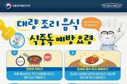한국시사경제 김숙영 기자 | ■ 대량 조리 음식 식중독 예방요령 ① 완전히 익히기 육류 중심온도 75°C(어패류 85°C) 1분 이상 가열하기 ② 조리된 음식 즉시 제공하기 조리된 상태로 상온에 방치되지 않도록 조리 후 즉시 제공하기 ③ 가열 조리 후 신속히 냉각하기 가열 조리 후 즉시 섭취하지 않을 시, 여러 용기로 나누어 담거나 신속히 냉각하기 ④ 보관온도 유지하기 따뜻한 음식은 60°C 이상, 차가운 음식은 5°C 이하로 보관하기 ⑤ 재가열하여 섭취하기 보관된 음식 섭취 시, 충분히 가열 후 섭취하기 ■ 운반 시 식중독 예방 요령 · 차량·운반기구 청결히 관리하기 - 오염되기 쉬운 곳 세척·소독하고 청결 상태 수시로 확인하기 · 운반 시 음식 온도 관리 주의 - 따뜻한 음식과 차가운 음식이 서로 닿지 않게 구분하기 · 안전하게 포장하기 - 음식이 새거나 오염되지 않도록 완전히 밀폐되게 포장하기 · 운반 후 즉시 제공하기 - 음식 운반이 완료되면 즉시 제공하기