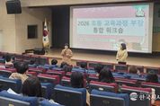 한국시사경제 문화팀 | 김포교육지원청은 26일 김포교육지원청 아라홀에서 관내 초등 교육과정 부장 48명을 대상으로 ‘2026 교육과정-수업-평가 통합 지원 정책’ 현장 안착을 위한 역량강화 워크숍을 개최했다. 이번 워크숍은 경기교육 주요 정책인 ‘자율과 주도성’, ‘역량 중심 교육과정’ 실현을 학교 현장에 구체적으로 적용하기 위한 자리로 마련됐다. 특히 초등 교육과정 부장들의 전문성 신장을 통해 ‘학생 삶의 역량을 함양하는 깊이있는 수업’과 ‘학생의 성장을 지원하는 학습으로의 평가’가 학교 현장에서 실질적으로 구현될 수 있도록 지원하는 데 중점을 두었다. 이날 행사는 ▲교육과정-수업-평가 통합 정책 안내 ▲2026 초등 학업성적관리규정 안내 ▲교육과정 부장의 역할과 책임 ▲권역별 교육과정 부장 네트워크 협의회 등으로 구성됐다. 참석자들은 정책 방향을 공유하고 학교 현장에서의 실행 과제를 구체화하며, 권역별 네트워크 조직을 통해 협력 기반을 강화했다. 특히 교육과정 부장 간 연대를 체계화함으로써 학교 간 우수 사례 공유와 공동 문제 해결이 가능한 협력 구조를 마련했다는 점에서 의미가 크다. 이는 경기교육 정책과
