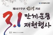 한국시사경제 대구취재본부 | 대구 중구는 제107주년 3.1절을 맞아 오는 3월 1일 오전 10시, 대구 지역 3·1 만세운동의 역사적 현장인 청라언덕과 3.1만세운동길, 이상화·서상돈 고택 일원에서 ‘3.1만세운동 재현행사’를 개최한다. 이번 행사는 학생과 시민, 공무원 등 1,000여 명이 참여해 3·1 만세운동을 직접 재현하며 순국선열의 숭고한 독립 정신을 기리고, 지역 근대사의 의미를 되새기기 위해 마련됐다. 기념식은 동산의료원 내 청라언덕 구름다리 밑 주차장에서 검무 퍼포먼스를 시작으로, 주민 대표 33인의 독립선언문 낭독, 미니 뮤지컬 ‘대한이 살았다’ 공연, 중구 어린이합창단의 ‘삼일절 노래’ 및 ‘8호 감방의 노래’ 제창, 참가자 전원의 만세삼창 순으로 진행된다. 이후 참가자들은 청라언덕을 출발해 3.1만세운동길과 영남대로길을 거쳐 이상화·서상돈 고택까지 만세삼창을 외치며 행진한다. 행진 후에는 서상돈 고택 앞에서 퓨전 국악 그룹 여울의 ‘배띄워라’, ‘봄이왔네’, ‘아리랑’ 공연이 이어져 전통과 현대가 어우러진 무대를 선보일 예정이다. 행사 당일 오전 9시 30분부터 청라언덕 챔니스