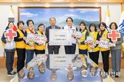 한국시사경제 사회팀 | 인천광역시 계양구는 5일 대한적십자사 인천지사에 특별회비 100만 원을 전달하며 재난구호 및 취약계층 지원을 위한 나눔 활동에 동참했다. 이번 전달식에는 윤환 계양구청장을 비롯해 대한적십자사 인천지사 지사장, 대한적십자사 계양구봉사회 회장 등 관계자가 참석해 나눔의 의미를 함께했다. 윤환 구청장은 “적십자 특별회비가 도움이 필요한 이웃들에게 실질적인 보탬이 되기를 바란다.”라며 “앞으로도 대한적십자사와 긴밀한 협력을 통해 인도적 지원이 원활히 이뤄질 수 있도록 노력하겠다.”라고 말했다. 한편, 대한적십자사 특별회비는 지방자치단체가 자발적으로 참여하는 기부금으로, 재난구호와 사회취약계층 지원 등 다양한 인도주의 사업에 사용된다.