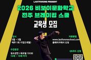 한국시사경제 전북취재본부 | 전주시와 (사)라스트포원(대표 조성국)은 오는 3월부터 5월까지 운영되는 상반기 전주브레이킹스쿨 수강생을 선착순 모집한다고 20일 밝혔다. ‘전주브레이킹스쿨’은 전북을 대표하는 비보이 전문예술법인인 (사)라스트포원과 전주시가 브레이킹 저변 확대와 관련 분야 인재 양성을 위해 함께 운영하는 비보이문화학교로, 시민 누구나 브레이킹을 쉽고 안전하게 접할 수 있도록 생활체육·문화예술 교육 기회를 무료로 제공하는 것이 특징이다. 교육 내용은 △기초 리듬트레이닝 △브레이킹 기본 동작 △신체 능력 강화 △바닥동작(플로워 댄스) 등 입문자도 따라 하기 쉽도록 구성될 예정이다. 교육 기간은 3월부터 5월까지 3개월 과정으로, 매주 1회 오후 7시 운영한다. 수업은 청소년반(10세~19세, 화요일)과 성인취미반(20세~45세, 수요일)으로 나뉘어 진행되며, 반별 모집 인원은 20명 내외다. 교육은 전주역 앞 첫마중길에 위치한 전주브레이킹스쿨 비보이연습공간(백제대로825 지하)에서 이뤄진다. 교육 신청은 라스트포원스쿨 누리집 또는 포스터 QR코드를 통해 가능하며, 모집 인원 충