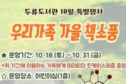 한국시사경제 대구취재본부 | 대구두류도서관은 10월 18일부터 31일까지 어린이실에서 선착순 40가족을 대상으로 책과 소풍 물품을 함께 대여하면 머리띠와 퍼즐을 증정하는‘우리가족 가을 책소풍’행사를 실시한다. 참여를 원하는 가족은 어린이실에 방문하여 도서관 회원증을 제시하고 책과 돗자리, 간이의자, 미니테이블, 독후활동지, 보드게임 등 소풍에 필요한 물품을 대여하고 당일 오후 5시까지 반납하면 된다. 기타 자세한 내용은 도서관 누리집 또는 어린이실로 문의하면 된다.