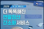한국시사경제 문화팀 | 더 똑똑해진 연말정산 간소화 서비스 2026년 1월 15일 개통합니다! ■ 더~욱 새로워진 연말정산 간소화 서비스 기존 42개 자료+ 3개 자료 추가 1. 발달 재활 서비스 이용 증명 2. 장애인 활동 지원 급여 본인 부담금 자료 3. 체육시설 이용료 자료 ■ 더~욱 정교해진 소득 기준 초과 부양가족 명단 제공 소득 금액 100만 원 초과 부양가족에 대한 정보 연말정산 간소화 서비스 자료 조회 화면에서 안내 * 근로소득만 있는 경우 총급여 500만 원 - 소득 기준 초과 부양가족 내역 * 자세한 사항은 국세청 블로그를 참고해주세요! ■ AI 전화 챗봇 상담 - 국세 상담센터: ☎126→0번→0번(상담사 또는 AI 상담사 연결) - 세무서: 대표번호→2번→6번(AI 상담사 연결) (AI 상담사) · 주민등록번호 입력 후 본인인증 연말정산 간소화 자료 일괄 제공 현황, 부양가족의 간소화 자료 제공 동의 현황 등 · 생성형 AI 챗봇 상담 시범 운영 경로→홈택스 접속→홈택스 퀵메뉴→챗봇 상담 클릭 *홈택스 ■ 연말정산 유의 사