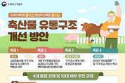 한국시사경제 문화팀 | ■ 소비자 부담은 줄이고 생산자 소득은 올리는 '축산물 유통 구조 개선 방안' (목표 1) 한우 - 사료 유통비용 각각 10% 절감 및 도소매 가격 연동성 강화 (목표 2) 돼지 - 거래가격 투명성 제고 및 삼겹살 규격 강화, 기후 변화 대응 생산성 향상 지원 (목표 3) 닭고기·계란 - 가격 조사 체계 개편 및 등급제 활성화 (목표 4) 온라인 - 온라인 거래 활성화 및 가격 비교 서비스 확대 ■ 4대 중점 과제 및 10대 세부 추진 과제 01. 한우 유통 효율화 및 사육 방식 개선 - 한우 유통 효율화(농협) 및 직거래 확산 - 한우고기 판매장 유형별 소·도매가격 연동성 강화 - 한우 사육 방식 개선 및 단기 비육 한우고기 유통 02. 돼지 거래가격 투명성 강화 및 삼겹살 규격 강화 - 경매 물량 확대 및 거래가격 수집·제공 - 삼겹살 규격 강화 및 부위 세분화 - 돼지 생산 관리 인증제 도입 및 기후변화 대응 생산성 향상 지원 03. 닭고기·계란 가격 조사 개선 및 계란 등급제 활성화 - 닭고기·계란 가격 조사 체계 개편