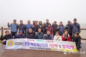 한국시사경제 경남취재본부 | 바르게살기운동 함양군협의회(회장 이경수) 산하 바르게살기운동 산악회(회장 오재석)는 지난 2월 28일 오전 회원 25명이 참여한 가운데 상림공원 불로폭포 전망대에서 시산제 행사를 가졌다. 이날 시산제는 산악인 선서와 안전 산행을 기원하는 축문 낭독 및 음복 순으로 진행됐으며, 2026년 산악 활동의 시작을 알리고 무사 산행과 안전을 기원하며, 회원들은 산을 사랑하는 마음과 동료애를 다지는 뜻깊은 시간을 가졌다. 오재석 산악회장은 “올해도 회원 간 배려와 소통을 바탕으로 안전 수칙을 철저히 지키는 산행을 실천하겠다.”라며 “이번 시산제를 통해 회원들의 건강과 안전한 산행을 기원하며, 앞으로도 의미 있는 산행 문화를 만들어 가겠다”라고 말했다. 이경수 바르게살기협의회장은 “무엇보다도 올 한 해 산악회원들의 안전한 산행을 기원한다”라며 “이번 시산제를 통해 올해도 바르게살기운동의 진실, 질서, 화합의 3대 이념을 바탕으로 자연보호운동과 지역사회에 봉사하겠다”라고 말했다. 한편, 바르게살기운동산악회는 산행을 통해 환경 정화 활동도 병행하며 정기적인 자연보호 캠페인을 이어오고 있