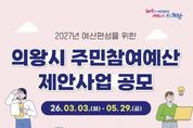 한국시사경제 권충현 기자 | 의왕시가 시민이 예산 편성 과정에 직접 참여하여 지역에 필요한 사업을 제안하는 ‘2026년 주민참여예산제’운영에 본격 나선다. 이번 주민참여예산의 총규모는 약 50억 원으로, 시 일반회계 예산의 1% 범위 내에서 편성된다. 특히 올해 공모에서는 ‘청년·청소년 대상 사업’과 ‘안전사고 예방 관련 사업’을 신규 우선 지원 대상으로 선정할 예정으로, 온라인 플랫폼 ‘주민이(e)참여’를 활용해 시민들의 사업 기획 및 제안 접근성을 대폭 높였다. 사업 제안은 3월 3일부터 5월 29일까지 받으며, 의왕시민은 물론 관내 직장인과 학생 누구나 참여할 수 있다. 공모 분야는 시 전체를 대상으로 하는 ‘시 정책사업’과 동 단위 불편 사항을 해소하기 위한 ‘지역현안사업’으로 나뉜다. 신청은 ‘주민이(e)참여’또는 시 홈페이지를 통해 온라인으로 하거나, 의왕시청(시청로 11) 기획예산과 및 각 동 주민센터의 방문·우편으로 가능하다. 김성제 시장은 “주민참여예산제는 우리 동네의 변화를 시민이 직접 만들 수 있는 소중한 기회”라며,“청년과 안전 분야를 비롯해 시민 들의 참신하고 실효성 있는 아
