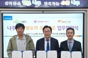 한국시사경제 권충언 기자 | 전라남도 나주시가 결식 우려 아동의 건강한 성장을 돕기 위해 민관 협력 사업인 ‘행복두끼 프로젝트’ 추진에 나섰다. 나주시는 6일 오후 시청 소회의실에서 행복나래㈜, 행복도시락사회적협동조합과 함께 ‘행복두끼 프로젝트’ 업무협약을 체결하고 사각지대에 있는 결식 우려 아동의 안정적인 식사 지원을 위한 협력체계 구축에 뜻을 모았다. 이날 협약식에는 윤병태 나주시장을 비롯해 조민영 행복나래㈜ 본부장, 최준 행복도시락사회적협동조합 사무국장이 참석했다. 이번 협약은 나주시가 결식 위기에 놓인 아동 약 40명을 발굴하고 사업 종료 후에는 지자체 급식 지원 대상으로 편입해 지속 가능한 복지 체계를 마련하는 것이 핵심이다. 협약에 따라 나주시는 지원 대상자 발굴과 사후 지원, 행복나래㈜는 사업비 및 기부물품 마련과 복지 홍보, 행복도시락사회적협동조합은 도시락 제조·배송 및 식단 관리 등 실질적인 급식 지원을 맡게 된다. 특히 행복나래㈜는 SK가 설립한 구매서비스 회사로서 사회적 가치 창출에 이익 전액을 사용하며 ‘행복얼라이언스’의 사무국으로 전국 120여 개 기업과 144개