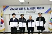 한국시사경제 기동취재팀 | 여주도시공사와 민주노총 공공운수노조 여주도시공사지회는 12월 9일 여주도시공사 사옥에서 2025년 임금 및 단체협약 체결식을 개최했다고 밝혔다. 이번 협약은 상호 신뢰와 존중을 바탕으로 진행된 성실한 교섭의 결실로, 노사 상생과 지속 가능한 발전을 위한 중요한 발판이 될 전망이다. 공사와 노동조합은 이번 협약을 통해 직원들이 안정적인 근무여건 아래 역량을 발휘할 수 있는 환경을 조성하고, 공공기관으로서 사회적 책임을 다하기 위한 제도 개선과 협력 체계를 강화해 나갈 방침이다. 임명진 사장은 “이번 임금·단체협약은 노사 간 소통과 이해를 바탕으로 이루어낸 결실”이라며, “앞으로도 신뢰 기반의 노사 협력을 통해 시민에게 더 나은 공공서비스를 제공할 수 있도록 노력하겠다"고 밝혔다. 여주도시공사는 앞으로도 합리적인 노사관계 정착을 위해 소통과 협력을 강화하고, 시민 중심의 공기업으로서 책임과 역할을 다하기 위한 다양한 노력을 이어갈 계획이다.