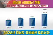 한국시사경제 권충언 기자 | 경상남도는 8월 29일 국무회의를 통과한 2026년 정부예산안의 경남도 국비 반영액은 지난해(9조 6,082억 원)보다 1조 5,336억 원이 증가한 11조 1,418억 원이라고 2일 밝혔다. 박완수 도지사는 이날 브리핑에서 “이번 정부 예산안에 경남도의 규모가 대폭 증가한 것은 남부내륙철도, 부산신항 김해 고속도로 등 주요 SOC 사업 예산이 대폭 반영되고, 예타 면제된 피지컬 AI 예산과 수해복구 예산이 포함됐기 때문”이라며 “이번 국비 확보는 단순한 수치를 넘어 경남의 교통·산업·경제 체질을 획기적으로 바꿀 전환점이 될 것”이라고 밝혔다. 또한 “정부의 AI·R&D 중심 혁신정책과 연계해 경남 주력 제조업의 AI 전환을 본격화하고, 도민의 신속한 일상 복귀를 위한 재해·재난 복구 예산도 확대 반영됐다”며 “내년도 국비를 마중물 삼아 경남을 산업·경제 중심지로 만들고 도민행복시대를 정착시키겠다”고 강조했다. 2026년 정부예산안 증가율은 8.1%(728조, 전년 대비 54조 7천억 증액)로, 인공지능(AI)와 연구개발(R&D), 균형발전, 저출생·고령화 대응 및 사회안전망 강화,