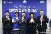 한국시사경제 이정이 기자 | 3일 문을 연 가천대학교 천원매점 일일 점원에 나선 김동연 경기도지사가 대학생들과 매점 음식을 나누며 기후위기 등 다양한 주제를 가지고 소통했다. 경기도는 고물가로 늘어난 대학생 생활비 부담을 실질적으로 낮추기 위해 전국 최초로 ‘대학생 천원매점’을 성남 가천대와 평택대학교에 3일 개소했다. 가천대 개소식에는 김동연 지사를 비롯해 이길여 가천대 총장, 김성록 NH농협은행 경기본부장, 김민성 가천대학교 학생대표 등이 참석했다. 대학생 천원매점은 NH농협은행 경기본부의 기부금을 재원으로, 학생 자치 기구가 직접 운영하며 경기도가 행정적 지원을 하는 가게로 청년층 지원을 위한 새로운 민·관·학 협력 모델로 주목을 받고 있다. 천원매점에서는 학생들의 선호도 조사를 거쳐 선정된 즉석밥, 참치캔, 컵라면 등 먹거리와 샴푸, 클렌징폼 등 생필품 30여 종을 취급한다. 재학생 인증 후 물품 4개를 ‘꾸러미’로 1천 원에 구매할 수 있으며, 시중가 대비 90% 이상 저렴해 월말·학기초 학생들의 생활비 절감 효과가 클 것으로 기대된다. 김동연 지사는 이날 점원용 조끼를 입고