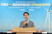 한국시사경제 권충언 기자 | 고창군과 동촌풍력발전㈜(대표 오희종)이 19일 오후 신재효 판소리공원 체험관에서 에너지 개발의 이익공유 등을 위한 ‘고창해상풍력 발전사업 지역상생 협약식’을 열었다. 심덕섭 고창군수, 조민규 고창군의회 군의장 및 군의원, 오희종 동촌풍력발전대표 등 관계자와 지역주민이 참석해 해상풍력 발전사업의 원활한 추진과 지역 상생 발전을 위한 협력을 다짐했다. 협약은 ▲주민 참여형 사업 추진 ▲지역 인력 및 장비·자재 우선 활용 ▲수산자원 보호 및 지역사회 공익활동 참여 등 지역 상생발전을 위한 내용으로 구성됐다. 고창군은 행정적 지원을, 동촌풍력발전㈜은 사업 총괄과 지역 기여를 책임지며 상호 협력할 예정이다. 이번 협약을 통해 고창군은 친환경 에너지 확산과 지역 발전이라는 두 가지 목표를 동시에 달성할 수 있는 발판을 마련하게 됐다. 오희종 동촌풍력발전㈜ 대표도 “고창군과 함께 지역과 기업이 동반 성장하는 모범적 사례를 만들겠다”며 “주민 참여와 지역사회 기여를 적극 실천하겠다”고 말했다. 심덕섭 고창군수는 “이번 협약은 단순한 에너지 개발을 넘어 군민과 함께하는 지속