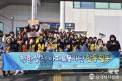 한국시사경제 사회팀 | 평택시자원봉사센터는 지난 11월 29일 서정리역 일대에서 아파트봉사단 3개 단체(고덕 파밀리에, 고덕 리슈빌 레이크파크, 고덕 대광로제비앙) 30여 명의 봉사자와 함께 합동 활동을 진행했다고 밝혔다. 이번 합동 활동은 서정리역 일대의 쓰레기 수거뿐 아니라, 시민들에게 환경 보호의 중요성을 알리는 캠페인 활동도 함께 진행됐다. 봉사자들은 ‘배수구 클린업(Clean-up) 캠페인을 통해 배수구 주변의 담배꽁초를 집중적으로 수고하고, 친환경 스프레이를 사용한 마킹 작업을 진행했다. ‘담배꽁초는 쓰레기통에 버려주세요’, ‘깨끗한 거리 함께 가꿔요’등의 메시지를 시민들에게 시각적으로 전달하며 무분별한 쓰레기 투기를 예방하는 효과를 기대하고 있다. 참여자는 “깨끗한 거리를 만드는 데 도움이 된 것 같아 뿌듯하고 생활 속 작은 실천과 올바른 쓰레기 배출이 지역 환경을 지키는 데 중요하다는 것을 느끼게 됐다”라고 전했다. 손영희 센터장은 “아파트봉사단의 지속적인 활동이 지역사회 환경 개선에 큰 도움이 되고 있다”며 “앞으로도 주민 주도의 자원봉사 활성화를 위해 다양한 프로그램을 확대하겠다”라고 전했다.