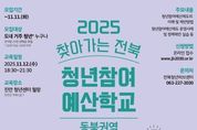 한국시사경제 김숙영 기자 | 전북청년허브센터(전북창조경제혁신센터, 대표이사 박선종)와 진안군청년센터(센터장 김현두)가 공동으로 주관하는‘2025 찾아가는 전북청년참여예산학교’가 오는 11월 12일(수) 오후 6시30분, 진안군청년센터에서 열린다. 이번 교육은 진안·무주·장수 지역의 청년이라면 누구나 참여할 수 있다. ‘청년참여예산제’는 청년이 직접 지역의 정책을 제안하거나 발굴한 사업을 예산에 반영할 수 있도록 하는 제도다. 찾아가는 프로그램을 기획하여 지역 청년의 정책 참여 확대와 청년참여예산제에 대한 이해를 높이기 위해 권역별로 진행된다. 이번 예산학교는 청년들이 지역 현안과 정책 아이디어를 예산과 연계해 직접 제안할 수 있도록 돕는 참여형 프로그램으로 구성됐다. 교육은 ▲청년참여예산제의 기본 개념 ▲정책 제안 실습 등 단계별로 진행되며 나라살림연구소 최승우 책임연구원이 강사로 참여해 시민참여예산 운영 사례와 정책 제안서 작성법을 안내한다. 또한 ChatGPT를 활용한 정책 제안 실습도 함께 진행된다. 이번 교육을 통해 진안·무주·장수 지역 청년들은 서로 소통하고 아이디어를 교류하며, 권역 내