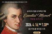 한국시사경제 권충언 기자 | 서울 용산구가 오는 16일 오후 7시 30분, 용산아트홀 대극장 미르(녹사평대로 150, 지하 2층)에서 클래식 공연 ‘에센셜(Essential) 모차르트’를 개최한다. 구민의 문화예술 향유 기회를 확대하고 지역 문화의 활력을 높이기 위해 마련한 자리다. 이번 공연은 서울문화재단 공연장 상주단체 육성지원 사업의 일환으로, 용산구와 용산문화재단(이사장 임형주), 트리니티이앤엠이 공동 주최‧주관한다. 무대는 2026년 모차르트 탄생 270주년을 기념해 그의 대표 작품들로 꾸렸다. 연주 프로그램에는 ▲작은별 변주곡 ▲교향곡 제41번 ‘주피터’ ▲오페라 ‘마술피리’ 중 밤의 여왕 아리아 ▲바이올린 협주곡 제5번 등이 포함됐다. 친숙한 선율과 화려한 기교, 웅장한 관현악(오케스트라) 음향이 어우러져 모차르트 음악의 폭넓은 매력을 전할 예정이다. 연주는 지휘자 정치용이 이끄는 ‘트리니티필하모닉오케스트라’가 선보인다. ▲바이올리니스트 강유경 ▲소프라노 이미영 ▲플루티스트 오아라가 협연자로 함께한다. 780여 석 규모 전 좌석 무료로 열리며 별도의 사전 신청 없이 선착순 입장으로 운영